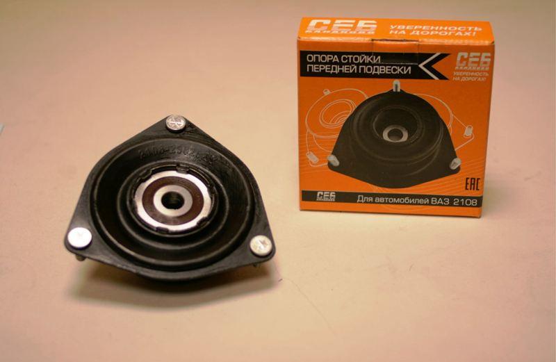 Опора верхняя передней стойки 2108-2902820 используется для переднеприводных автомобилей. Она служит для опоры передней стойки на кузов автомобиля. Кроме того, опора равномерно распределяет силы, которые передаются от подшипника передней стойки на кузов. Резиновая подушка успешно гасит вибрации от подвески автомобиля. Закрепляется запчасть тремя гайками на кузове автомобиля. Применяется запчасть для автомобилей ВАЗ 2108.