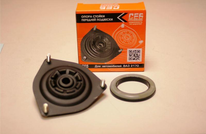 Опора верхняя передней стойки 2170-2902820 используется для переднеприводных автомобилей. Она служит для опоры передней стойки на кузов автомобиля. Кроме того, опора равномерно распределяет силы, которые передаются от подшипника передней стойки на кузов. Резиновая подушка успешно гасит вибрации от подвески автомобиля. Закрепляется запчасть тремя гайками на кузове автомобиля. Применяется запчасть для автомобилей ВАЗ 2170.