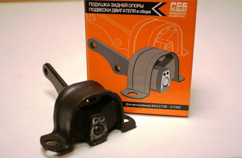 Кронштейн задней опоры двигателя взаимодействует с задней опорой. Вся конструкция устанавливается на кузов автомобиля, а кронштейн прикрепляется к двигателю на переднюю часть блока цилиндров. Конструкция служит для удержания двигателя в подвешенном состоянии. Резиновая втулка поглощает вибрации и колебания двигателя во время работы. Используется деталь в переднеприводных автомобилях ВАЗ.