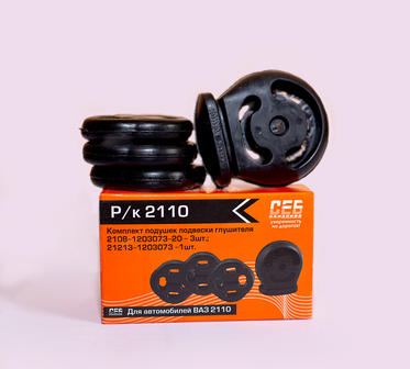 Комплект подушек глушителя из резины на ВАЗ 2110 состоит из 3-х подушек крепления 2108-1203073-20 и 1-ой подушки 21213-1203073, упаковка картонная коробка. Подушки служат для мягкого крепления системы выхлопных газов под днищем автомобиля.