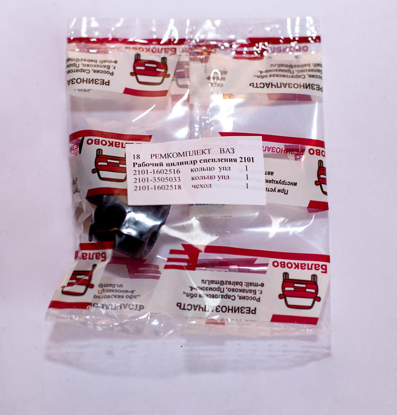 Ремкомплект 18Р идет на рабочий цилиндр сцепления автомобилей ВАЗ 2101-2107. Состоит из одного пыльника 2101-1602518 и двух разных манжет: 2101-1602516р, 2101-3505033.