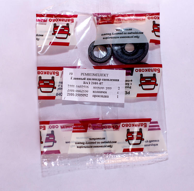 Ремкомплект 19Р идет на главный цилиндр сцепления автомобилей ВАЗ 2101-2107. Состоит из одного пыльника 2101-1602550 и трех манжет: 2101-1602516р - 2 шт., 2101-3505092р -1 шт.